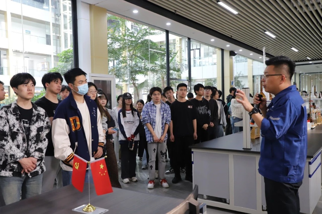 在技術(shù)團(tuán)隊(duì)引領(lǐng)下,學(xué)子們深入企業(yè)核心區(qū)域,分別參加了公司展廳、研發(fā)中心、裝備車間、